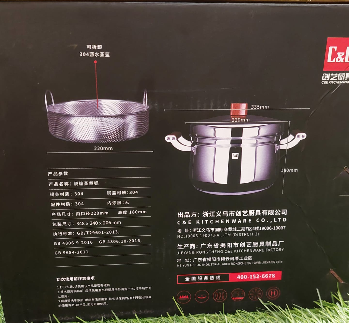 Cook your favorite dishes with ease using this high-quality 304 stainless steel steamer pot . Designed with a clear glass lid for easy monitoring and sturdy wooden handles for safe handling, this steamer ensures even heat distribution and durability. Perfect for steaming vegetables, seafood, dumplings, and more, it combines functionality with elegant design to enhance your kitchen experience.
