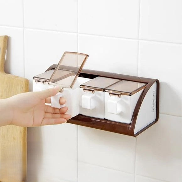 Keep your kitchen organized and your favorite spices within easy reach with this 4-in-1 Wall-Mounted Seasoning Box Set! Designed for convenience and style, each compartment comes with its own spoon and transparent lid for quick access and easy identification. Perfect for storing salt, pepper, herbs, or any of your go-to seasonings, this sleek and space-saving container is a must-have for every modern kitchen. Say goodbye to cluttered countertops and hello to effortless cooking!
