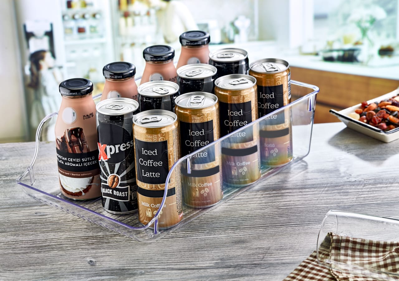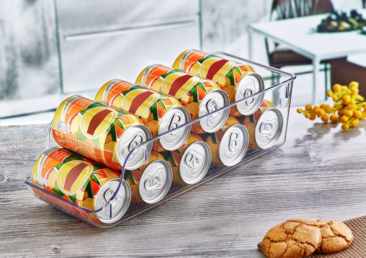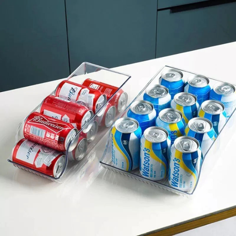 Practical set of 2 transparent organizers for the refrigerator , consisting of 1 can organizer and 1 small multipurpose organizer  , with the ideal size and shape to contain them in an organized way and easy to remove.
