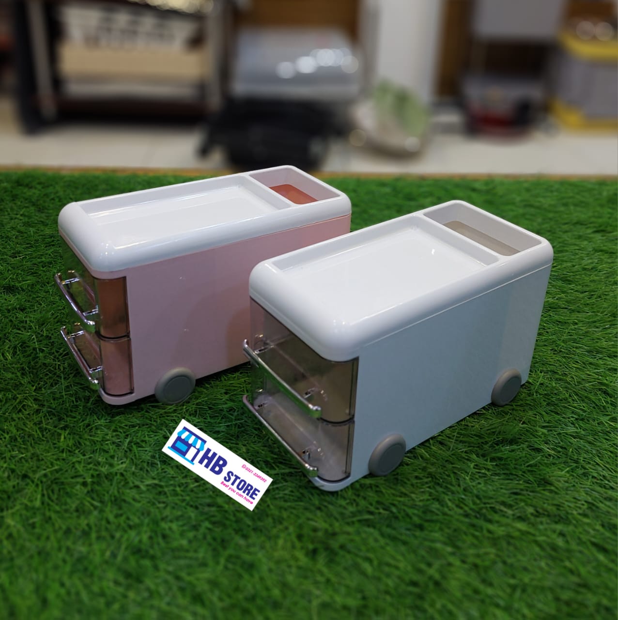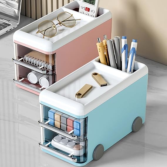 Description: Introducing our desktop storage box, the perfect solution for organizing your home or office space! Made from high-quality materials, this storage box is sturdy and durable, ensuring a strong load-bearing capacity. With its large capacity and divided compartments, you can easily store pens, stationery, and other sundries in an organized manner. The transparent and visible drawers not only allow you to see the contents at a glance but also pull out smoothly for easy access. Additionally, these drawers are dust-proof, keeping your items clean and protected. The adorable cartoon bus design adds a touch of fun to your countertop while providing practical storage for all your supplies. Say goodbye to clutter and hello to a tidy workspace with our desktop storage box!