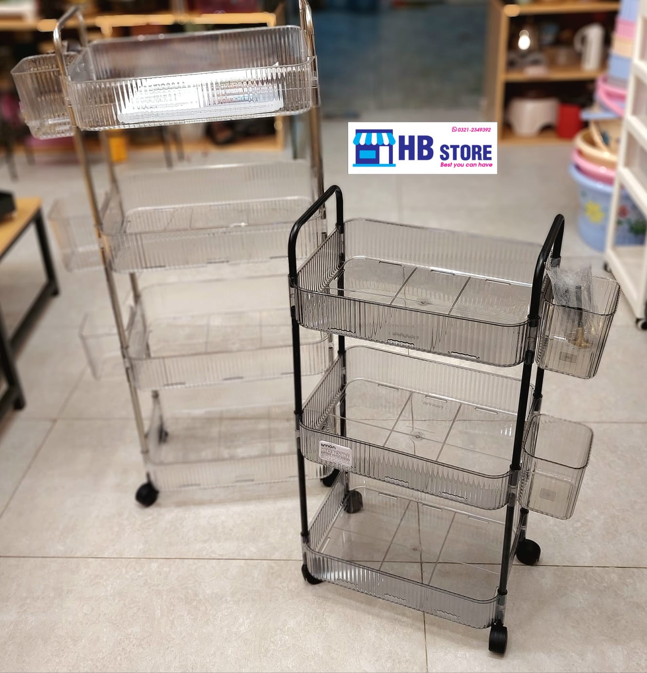 Streamline your home or office storage with the Limon 3/4-Layer Rolling Organizer Cart, featuring sleek transparent acrylic shelves and a durable metal frame. Designed for both style and function, this modern utility cart offers ample space across multiple tiers to neatly organize your essentials—whether it's toiletries, kitchen supplies, cosmetics, office tools, or craft materials. The smooth-rolling caster wheels ensure effortless mobility, while the side compartments add extra convenience for smaller items. Perfect for any room, this multi-purpose cart brings clarity, organization, and elegance to your everyday spaces