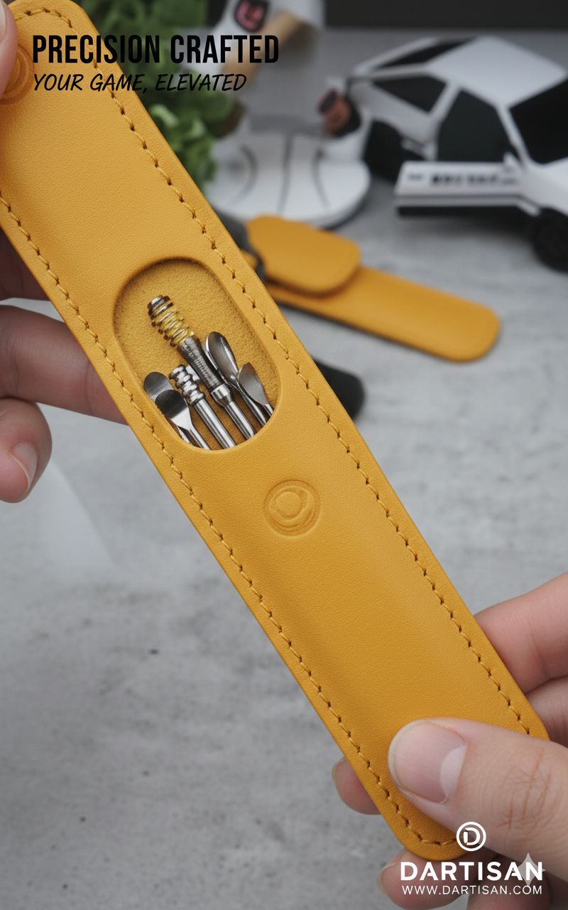 * Premium Storage: Housed in a durable, sleek, yellow-hued leather pouch with contrast stitching and an embossed DARTISAN logo. The case protects the tools while ensuring they are perfectly organized and portable.