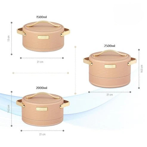 Luxura Stainless Steel Casserole Trio – 1.5 L / 2 L / 2.5 L | Insulated Elegance