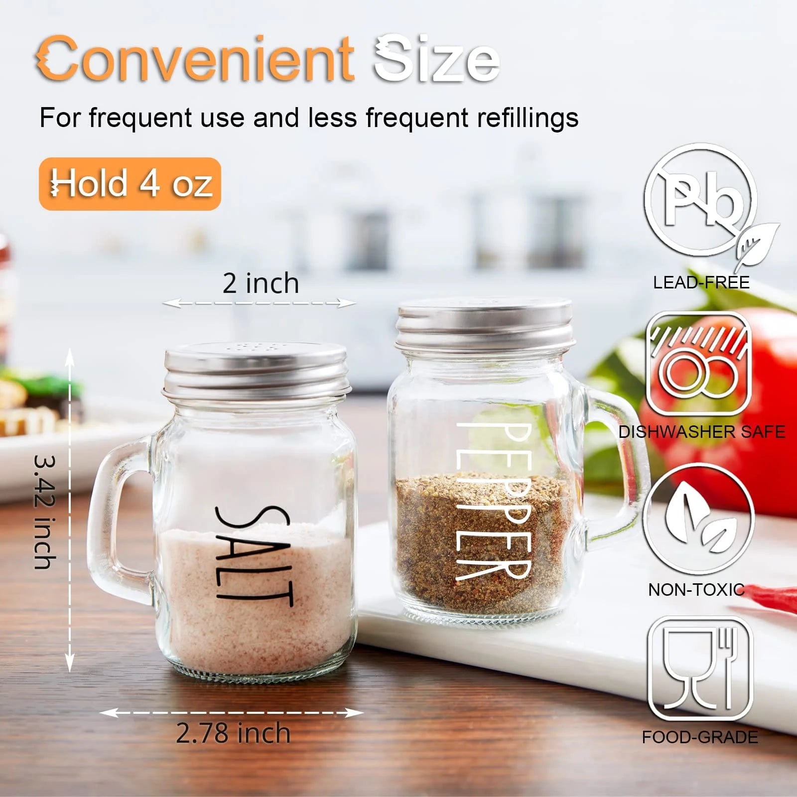 Durable and Convenient: These cute salt and pepper shakers are made of lead free glass and the lids of rustic salt and pepper shakers are made of premium stainless steel and engraved with “S” and “P”. The little handles make it easy to grab and use for cooking.