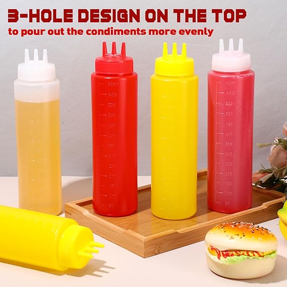 • Multiple Squeeze Holes for Precise Dispensing: our food squeeze bottle features 3 holes, allowing you to control the flow of liquids according to your desired portion size; Whether you prefer a drizzle or a generous amount, these bottles give you the flexibility to customize your sauce or dressing application