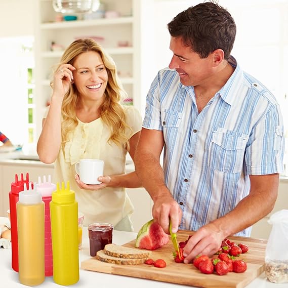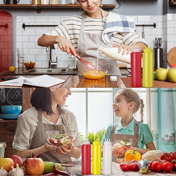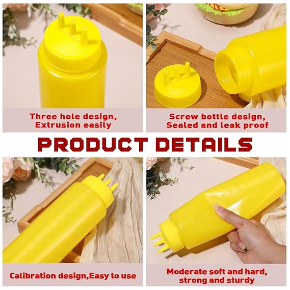 • Three Vibrant Color Options: add colors to your kitchen or picnic basket with our plastic sauce bottle, which comes in red, yellow, and white, allowing you to easily differentiate between different dressings or sauces; Upgrade your food presentation with these eye catching bottles