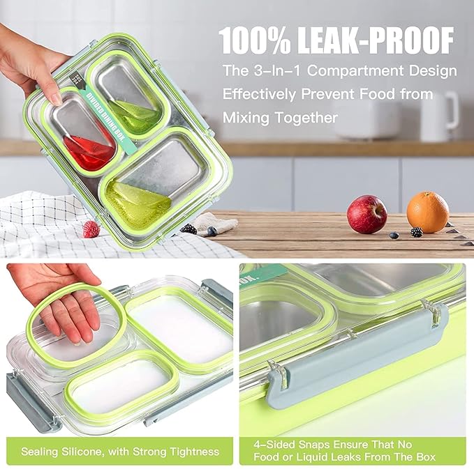 🌱BPA free & Food Grade: Your health is our priority. The lunch box is made with BPA-free materials,& Food Grade Material, this lunch box is built to withstand daily use. With ample space, this lunch box allows you to pack Healthy meals, ensuring you're nourished throughout the day. this lunch box offers a secure, leak-free solution, prioritizing your food safety.