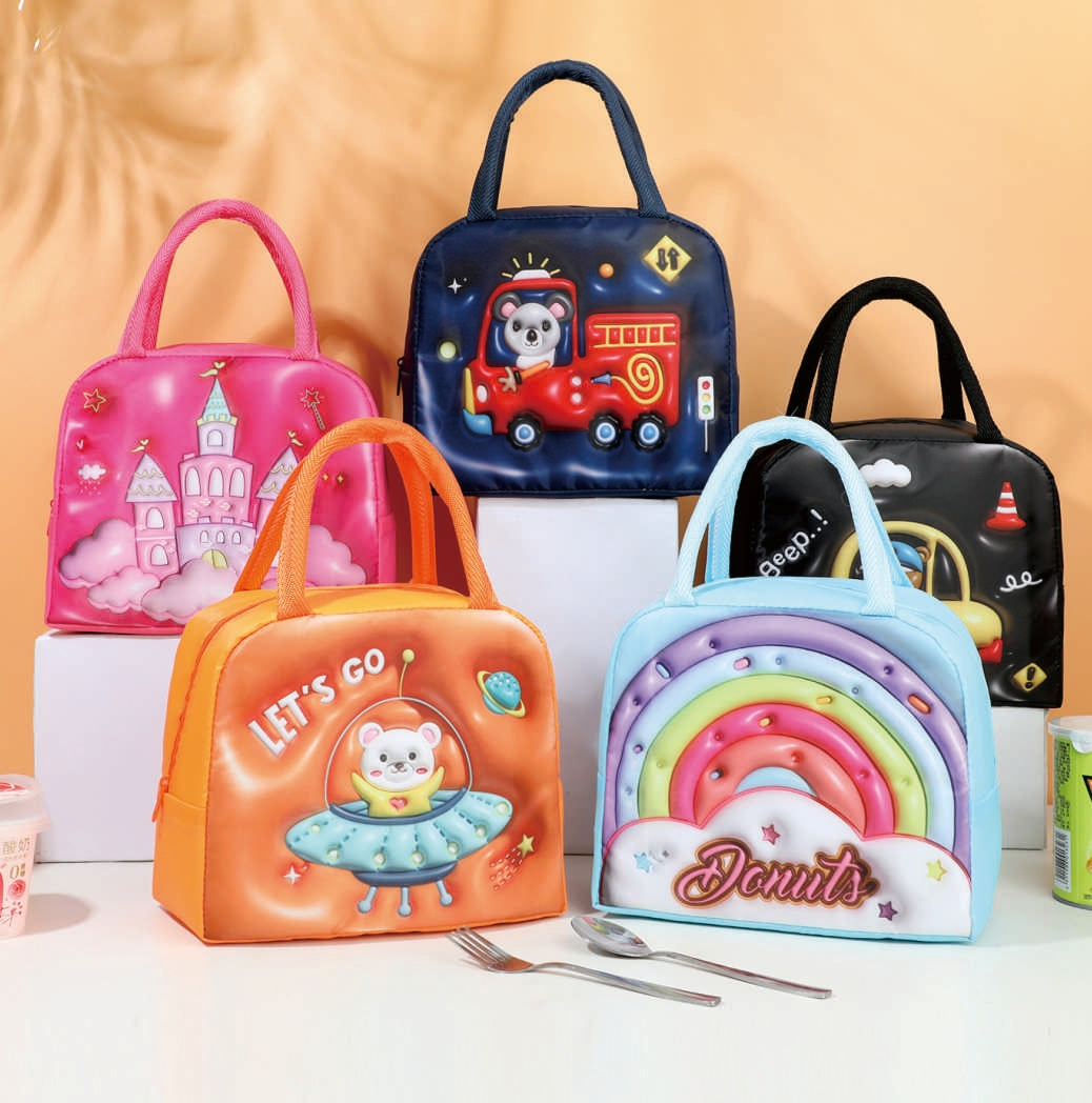 Make lunchtime magical and fun with our 3D Cartoon Lunch Bags ✨! Featuring bold pop-out designs like a fairy castle, rainbow donuts, space adventure, train ride, and a little car, these insulated totes are as playful as they are practical.