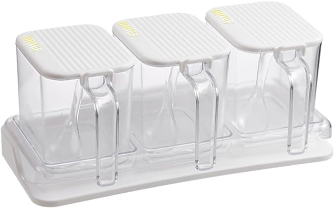 Portable Design: Set of 3 spice containers with a tray, compact and portable. Perfect for BBQ, camping, hiking, barbecue and travel.
