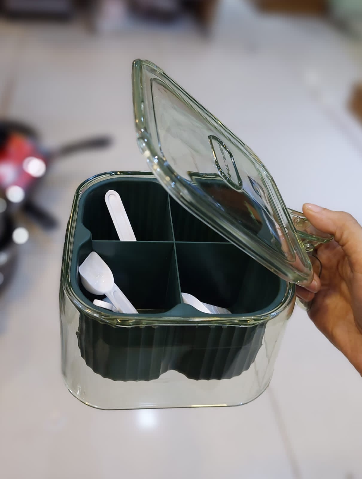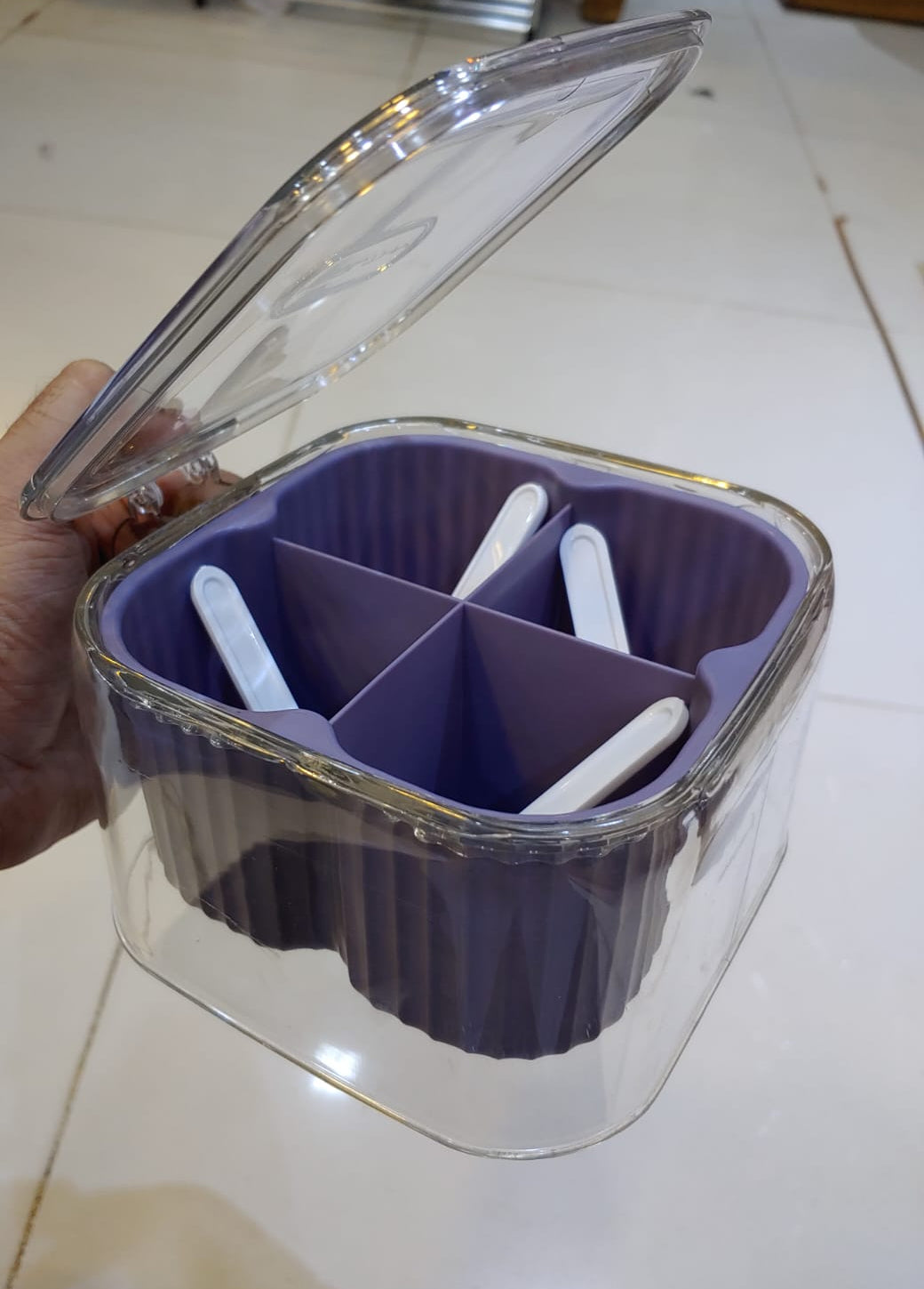 It can be used to hold a variety of condiments: pepper, sugar, salt, spice, chicken broth powder, corn starch and more.