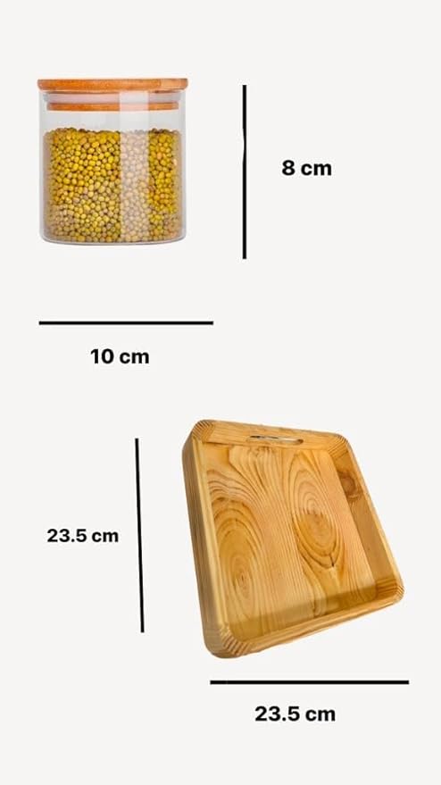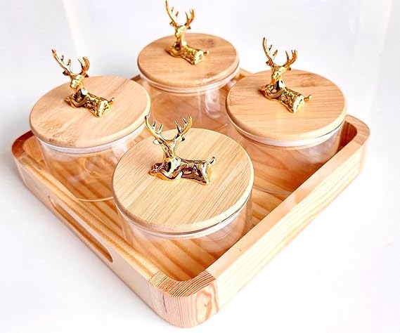 Package Content: 4 borosilicate jars with a wooden rack