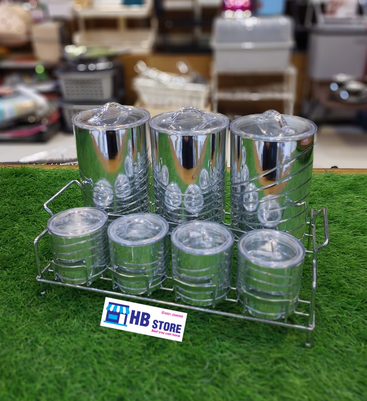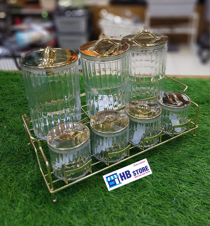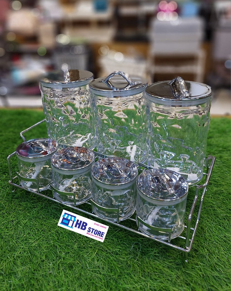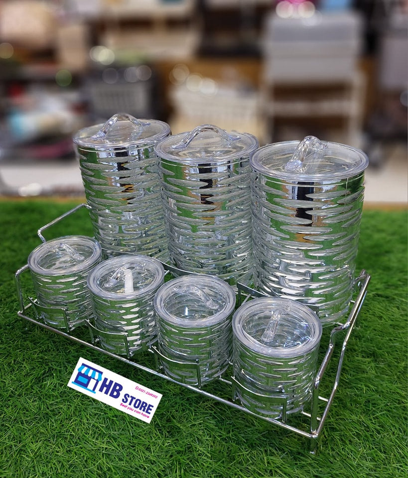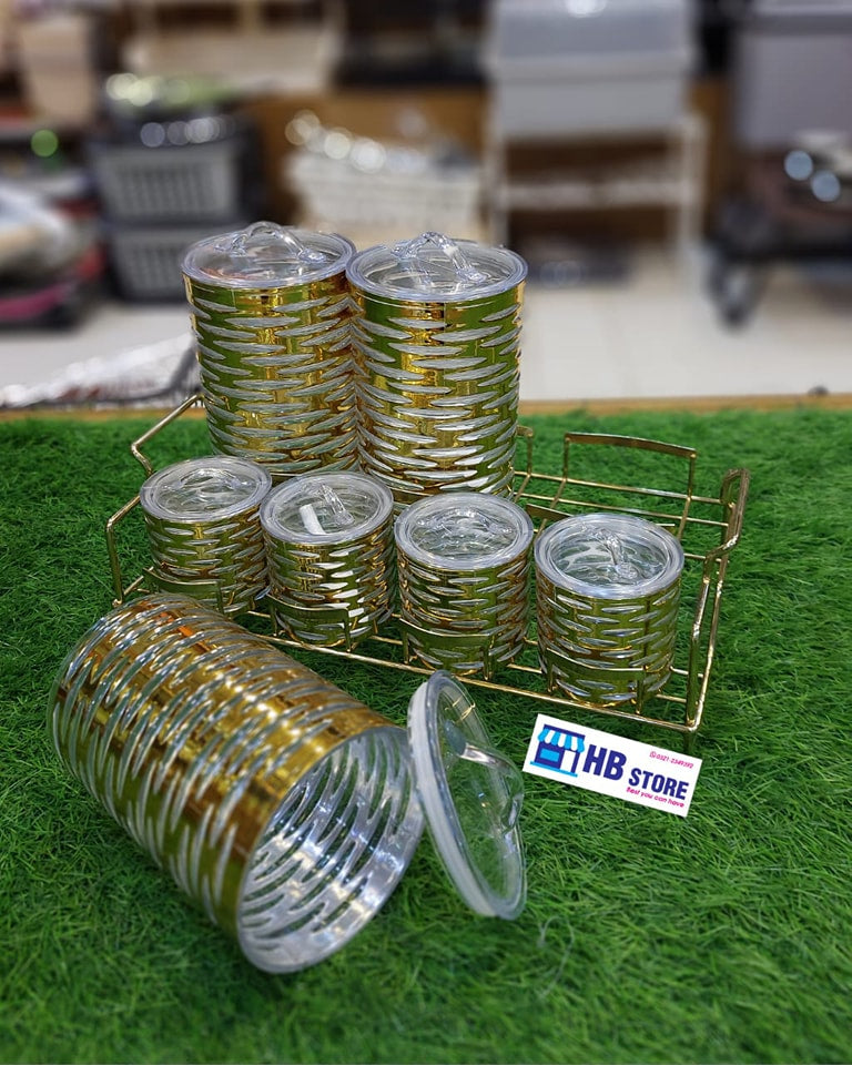 Homeket 7Pcs Acrylic Spice Box With Stainless Steel available in 4 different Design and 2 Colors which is Golden and Sliver