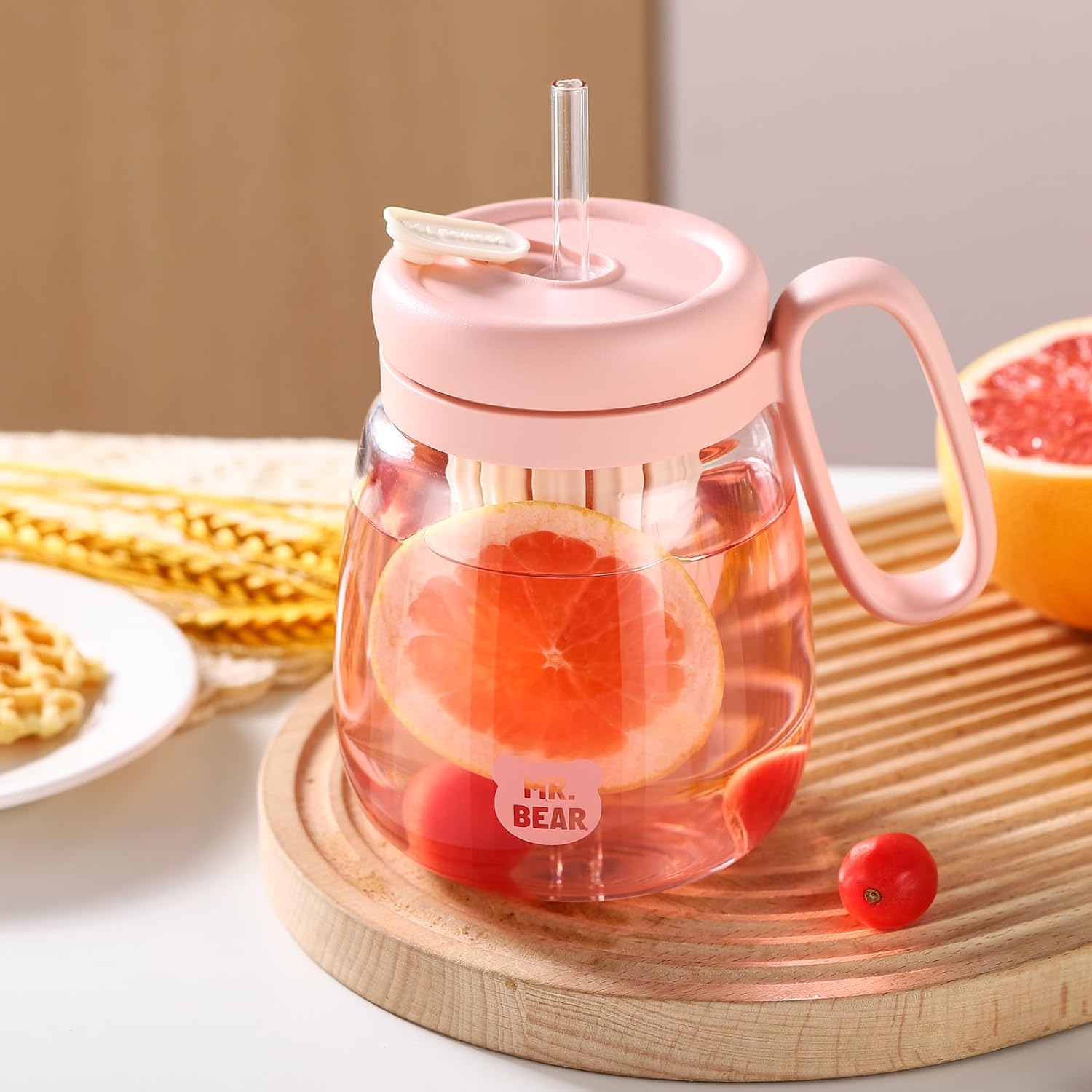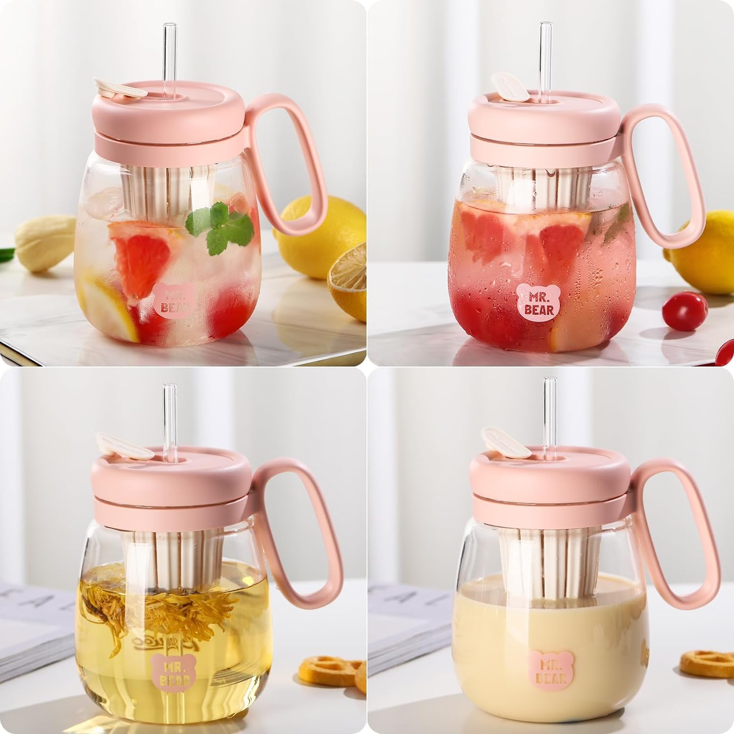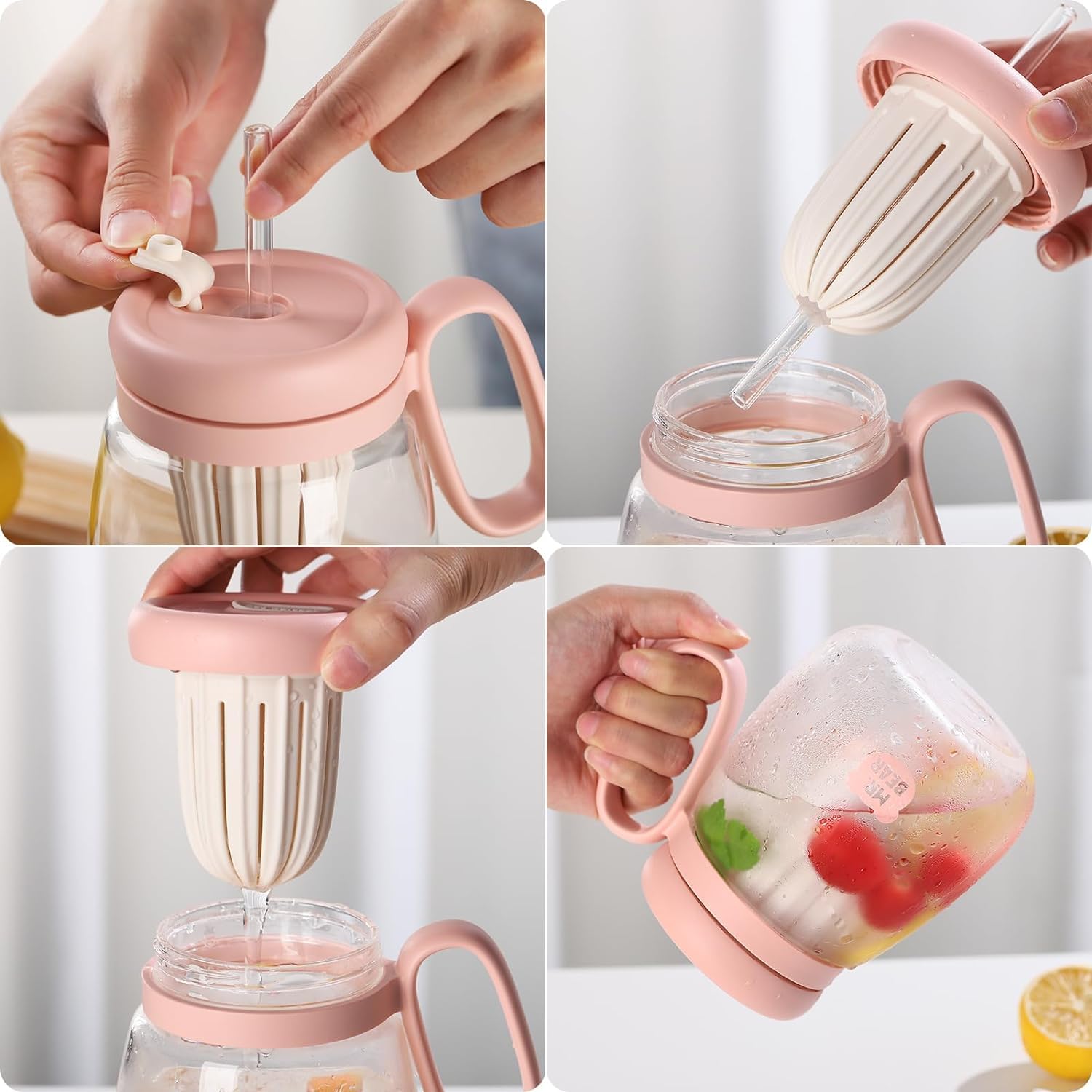 Lemon Glass Water Bottle with Lid and Straw Ins Style Drinkware