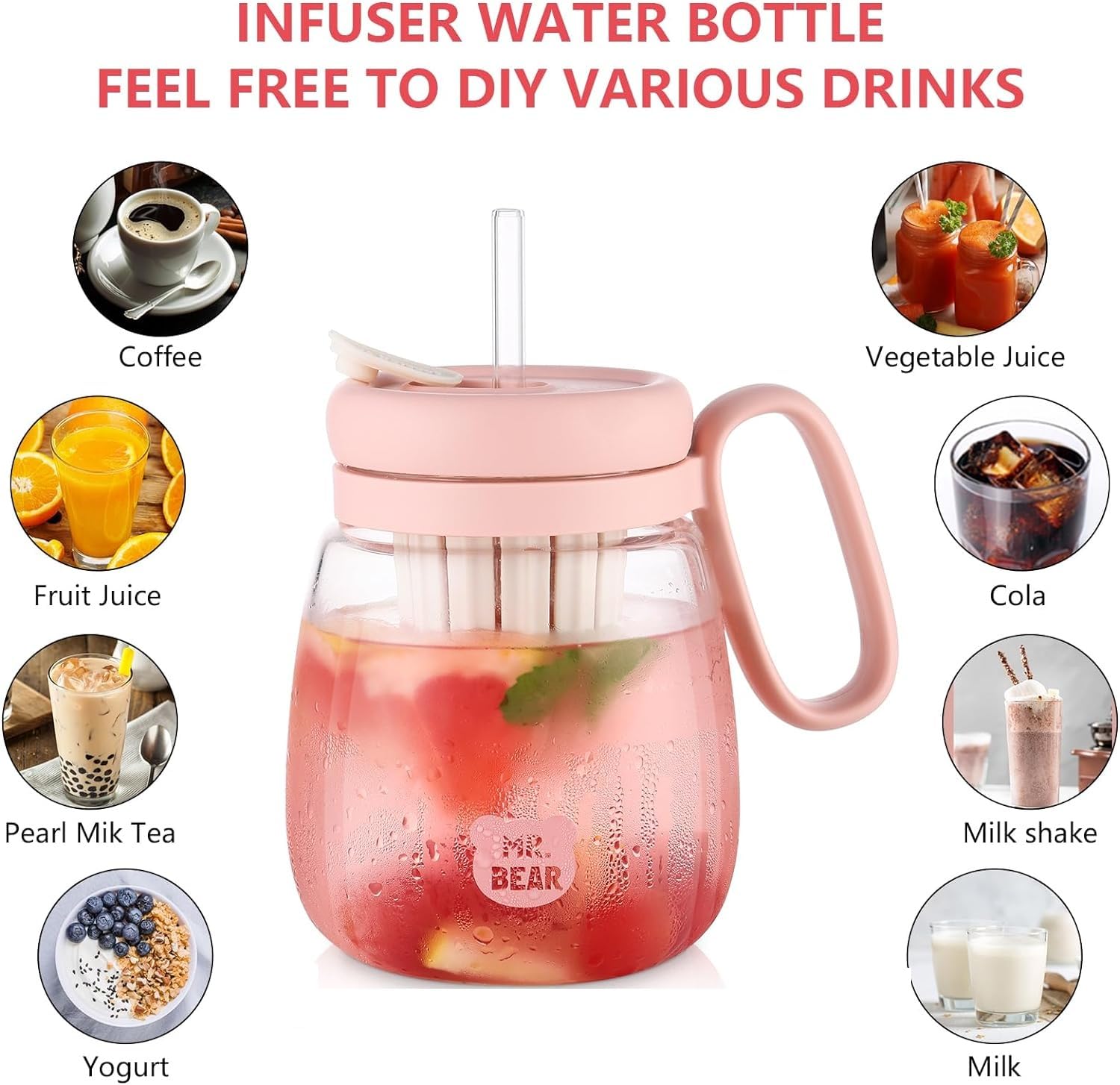This 850ml glass water bottle is a sleek and versatile hydration solution, perfect for both indoor and outdoor use. Made from high-quality transparent glass, it allows you to easily monitor your beverage level and enjoy the visual appeal of drinks like milk, juice, coffee, or infused water. Its leakproof design ensures safe and mess-free carrying, making it ideal for travel, workouts, office, or school. The portable and durable construction combines style with functionality, while the wide mouth makes it easy to fill, pour, and clean. Whether you're sipping on a hot coffee or a chilled smoothie, this bottle is a stylish and eco-friendly choice.