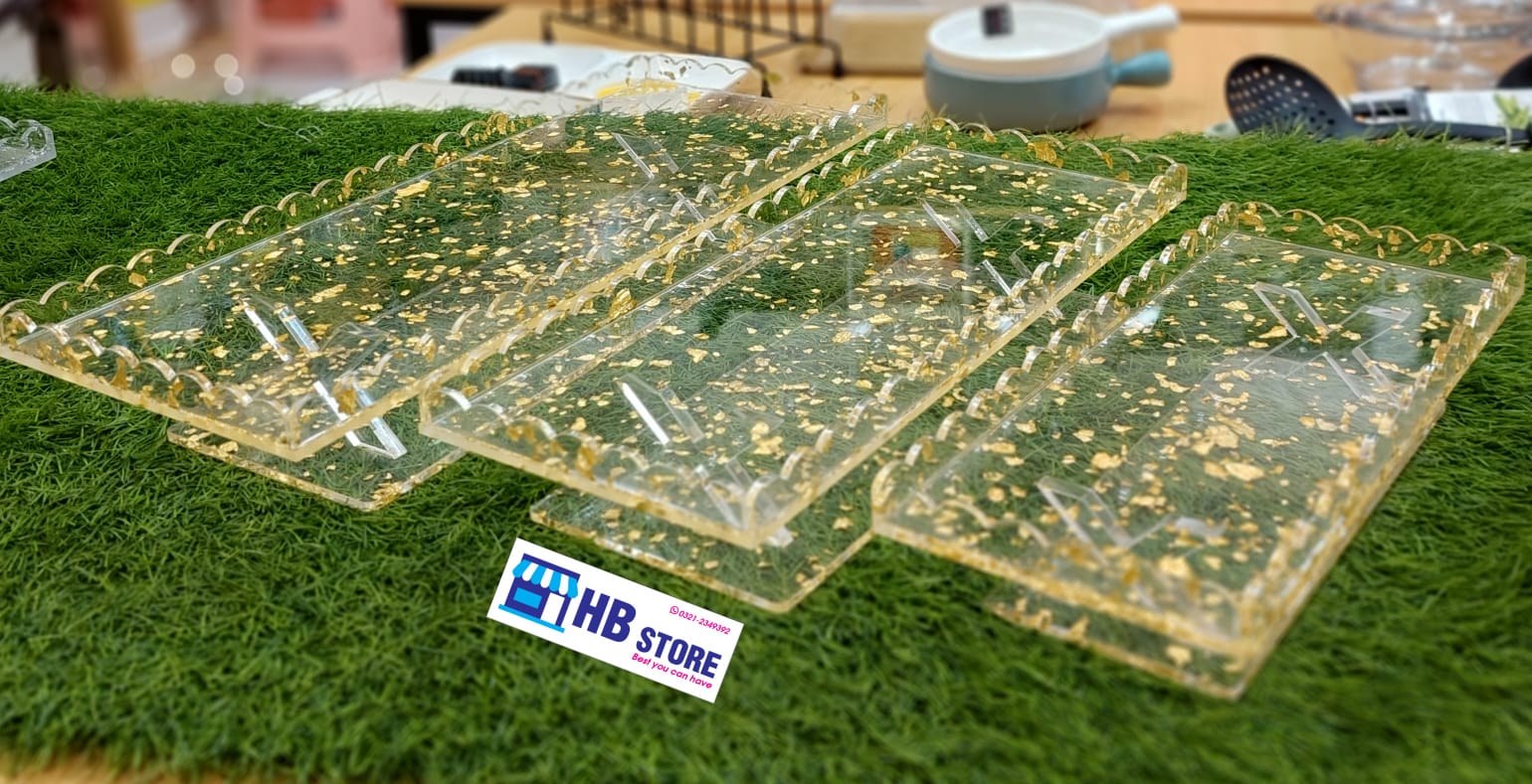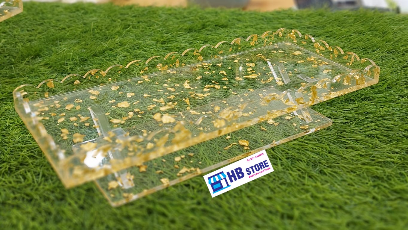 ✨ Acrylic Buffet Trays in 3 Sizes with Gold & Silver Foil Flakes ✨