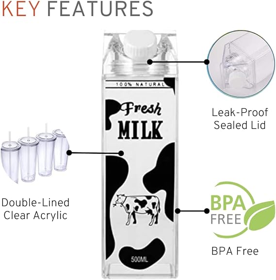 【Suitable for Storing Different Beverages】- The clear milk carton is practical with a capacity of 1000 ml/34 Oz, you can use it to store many beverages, such as coffee, milk, juice, cola, tea, soda water and so on, also can take it to school or office, and other outdoor school activities.