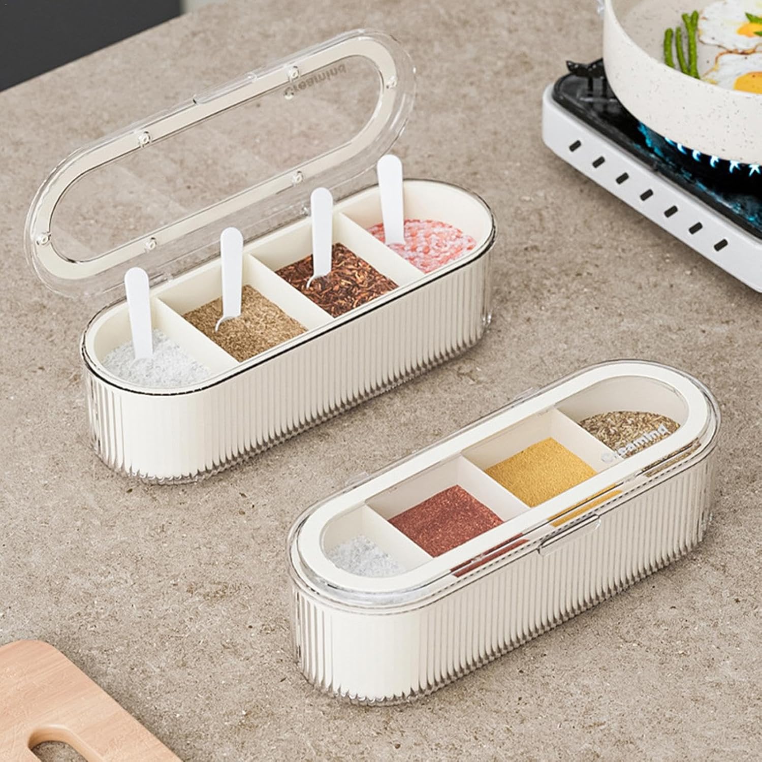 ✌Revolutionary Spice Storage: Our spice containers take organization to the next level with a divided design that ensures each spice is stored independently in four grids to prevent flavor contamination.