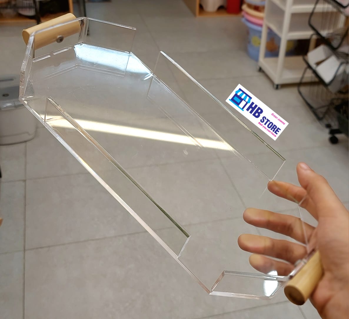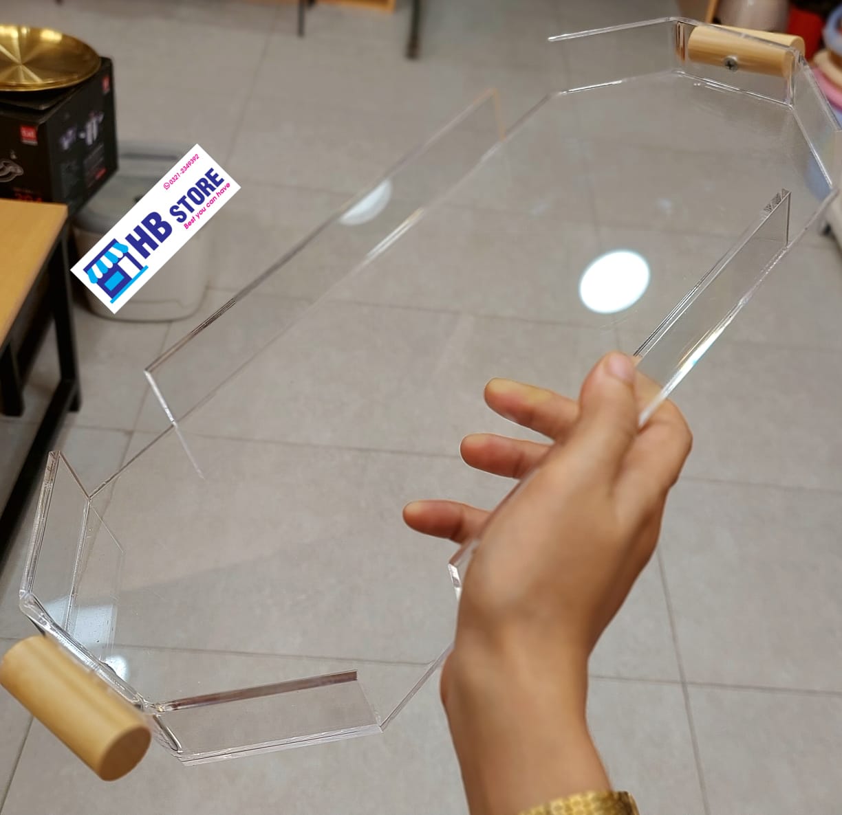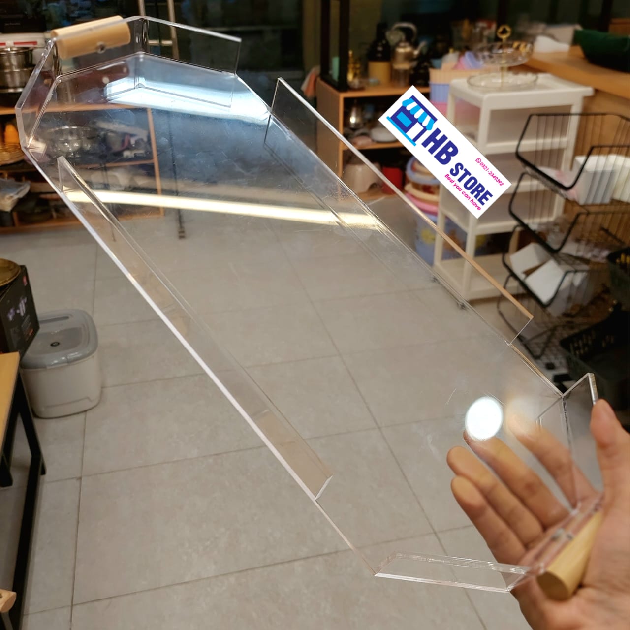 Elegant 3-Piece Clear Acrylic Tray Set – Stylish and functional trays with natural wooden handles, perfect for serving snacks, drinks, or organizing your vanity or coffee table. Durable, lightweight, and easy to clean – a modern touch for any space.