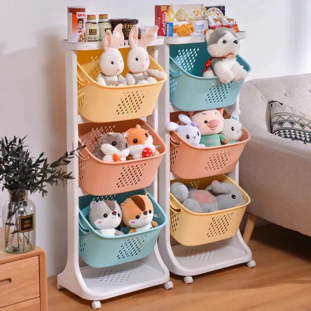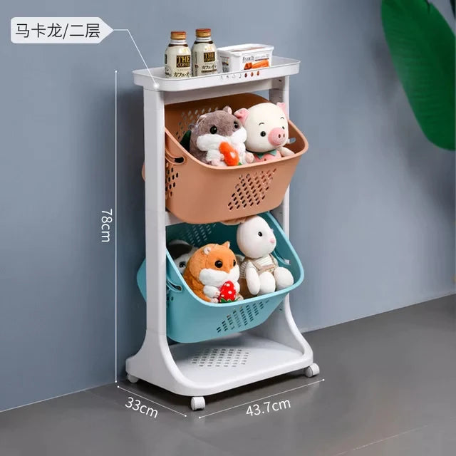 Plastic storage basket rack kitchen bathroom cart rack laundry basket storage bucket basket multifunction 2/3 layers floor household