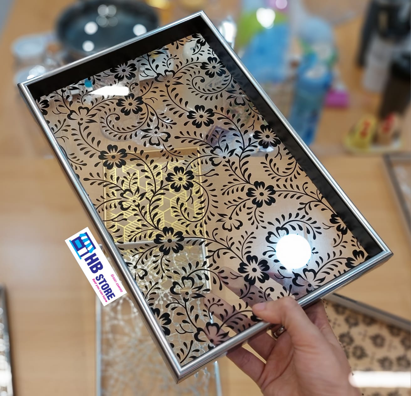 "From morning tea to evening dates – serve in style with our customizable Arabic acrylic trays, now in small, medium, large & four colors."