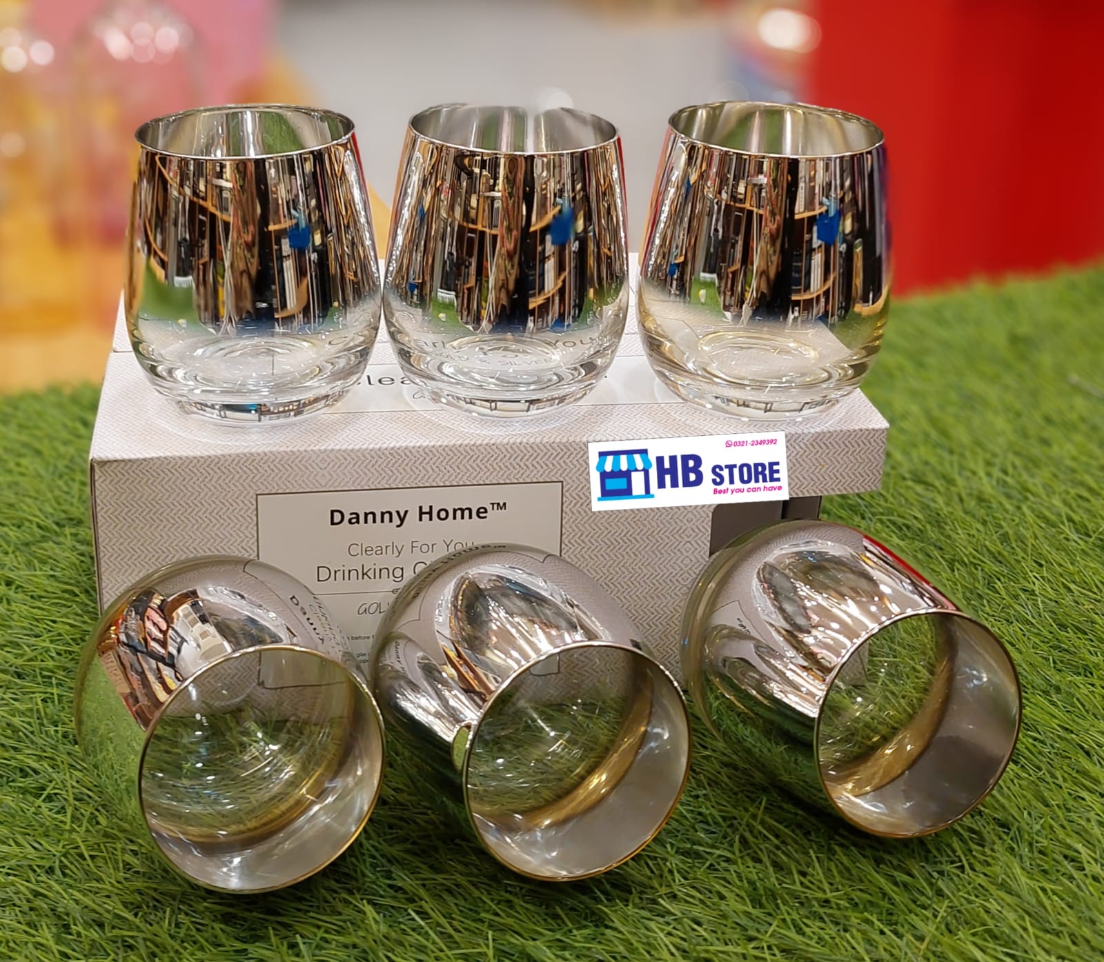 Denny Home Clear & Gold /silver Fancy Glasses 6Pcs