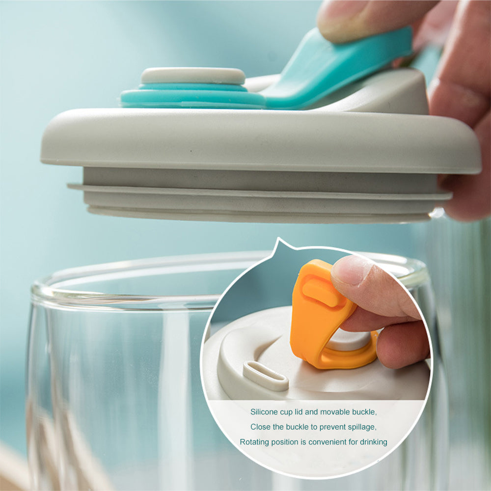 Equipped with a silicone sealing cover, anti-spill design, safe to use, when the cup lid and movable buckle are closed, they can be splash-proof. When drinking, turn the movable button to the temporary position to expose the drinking mouth.
