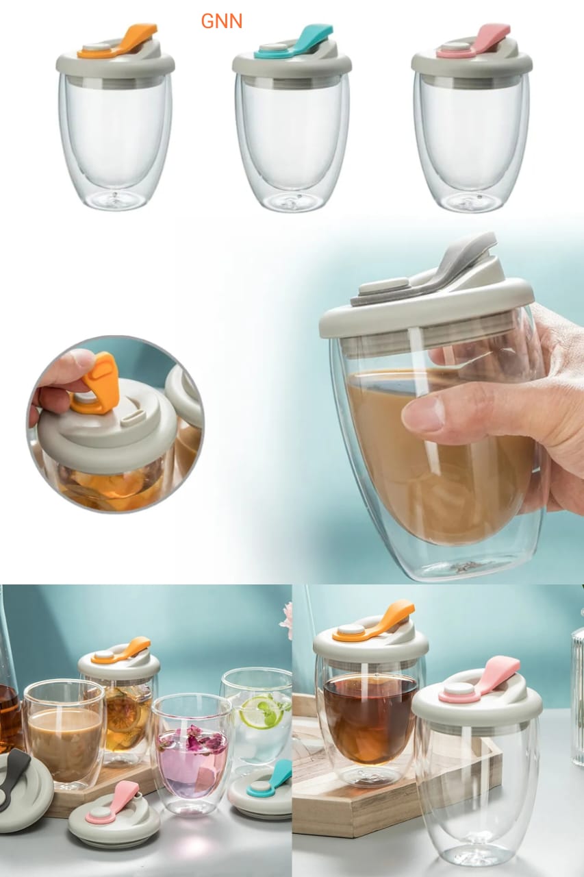 Packing list: 1*double glass cup, 1*silicone sealing lid