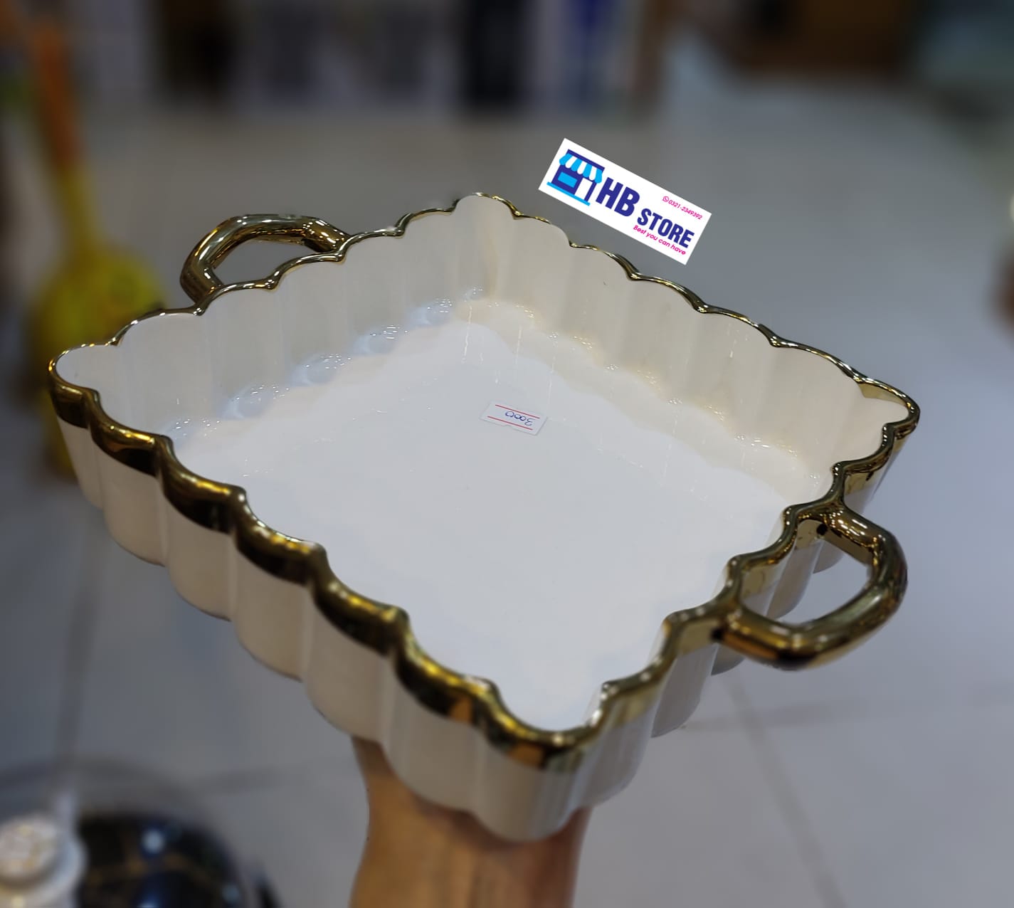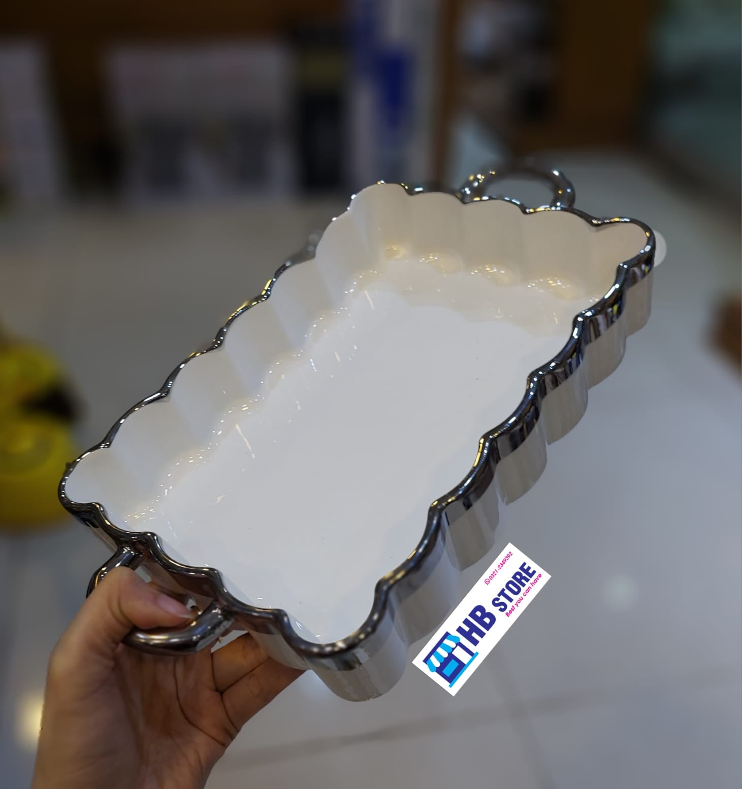 Flower Edge Ceramic Dish  Dessert fruit bread salad plate handle plate high quality hotel ware. The Rectangle Flower Edge design can not only be used as a soup bowl, but also can be used as an elegant and stylish...