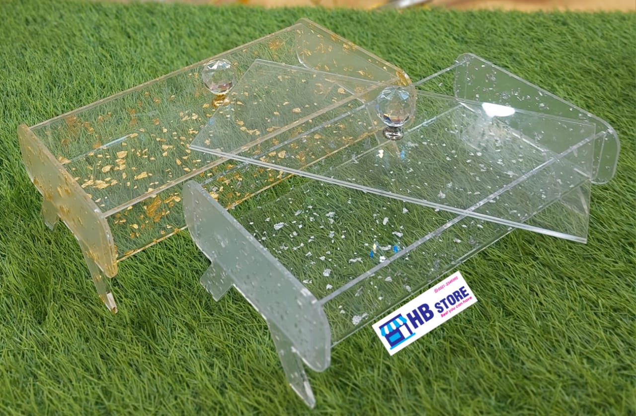 Bring elegance and functionality to your home with this Resin Glitter Dish Stand with Crystal Knob Lid, designed to impress in every detail. Made from high-quality clear resin, this stand comes in two beautiful styles – one with silver foil accents and the other with gold foil accents – adding a touch of sparkle and sophistication to your décor. The sturdy stand elevates the dish, making it perfect for serving dry fruits, sweets, chocolates, or snacks in style, while the crystal knob lid ensures easy handling and keeps contents fresh and dust-free. Ideal for weddings, parties, festive gatherings, or everyday use, this multipurpose dish stand also doubles as a decorative piece for your dining table, kitchen, or living room. A perfect blend of practicality and luxury, it also makes a thoughtful gift for housewarmings, engagements, or special occasions.