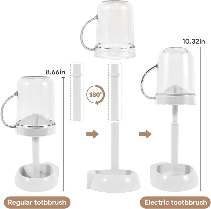 • Adjustable Height and Easy Maintenance: With a compact footprint of only 3.8 inches wide and standing at 8.66-10.32 inches tall, this holder fits effortlessly into any bathroom space. Anti-slip bars on the base ensure stability, even on glossy bathroom tiles. The removable white base makes cleaning a breeze.