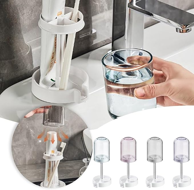• Modern and Functional: This holder includes a convenient wash cup for rinsing while brushing. After use, simply cover the cup to prevent dust buildup on toothbrush heads and protect them from potential toilet water splashes.