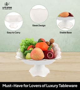 Elegance elevated – this white Bone China fruit bowl with stand adds a touch of sophistication to any table.