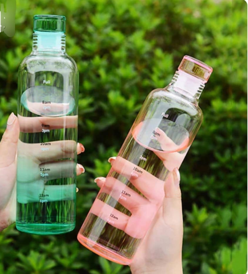 "Stay on schedule, sip by sip! The GlassFlow Tracker Bottle keeps you refreshed and motivated all day — available in 4 perfect sizes to fit every lifestyle."