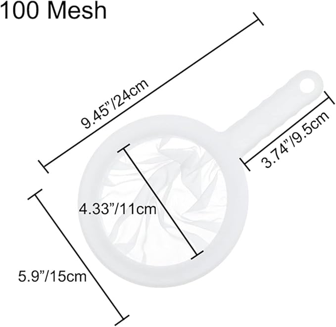 Material: 100% food grade nylon filter mesh, The food grade PP frame and mesh nylon materials can directly contact with food, it is high temperature resistant, easy to clean. Anti-rust, quick drying high temperature resistance, environmentally- friendly, reusable,BPA-free.
