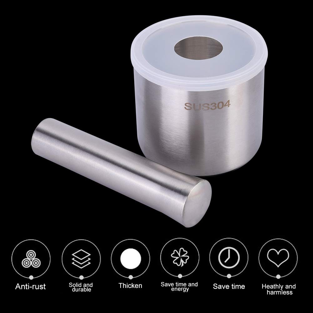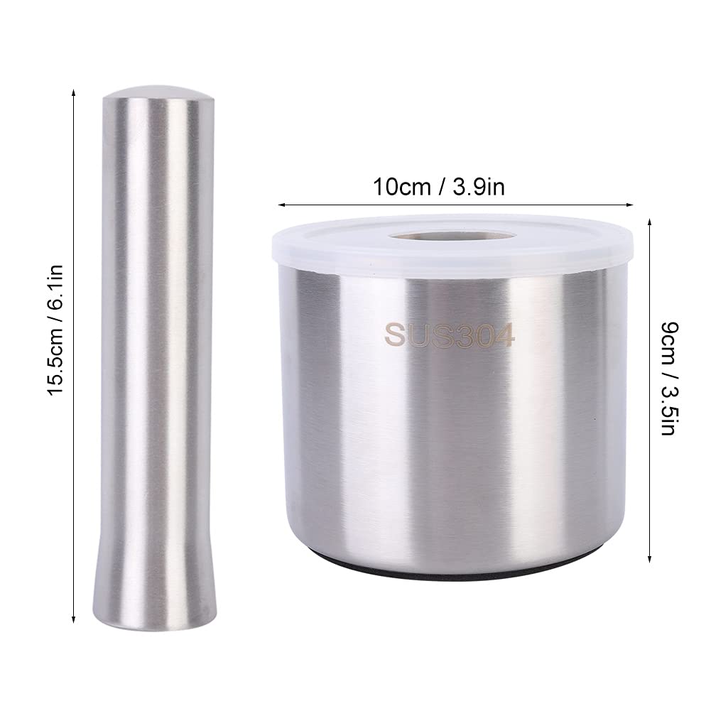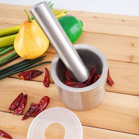 Solid Rustproof Material: Both mortar and pestle are made of food grade stainless steel. Not only is it rustproof, it is also resistant to damage and corrosion by acidic food.