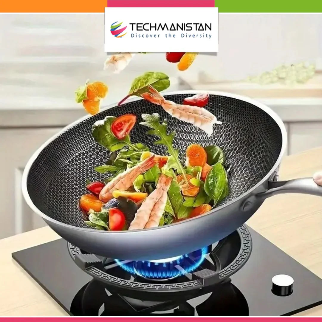 Elevate your cooking and serving experience with the beautifully crafted Honeycomb Laser Karai — a perfect fusion of tradition and modern design. Featuring an intricate laser-cut honeycomb pattern, this karai not only adds a touch of elegance to your kitchen or dining table but also ensures even heat distribution for perfectly cooked meals. Ideal for everything from sizzling stir-fries to rich curries, its durable construction and stylish finish make it both a functional cooking essential and a stunning serving piece. Bring home timeless charm and performance with every meal.