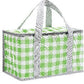 Its large capacity fits lunch boxes, fruits, drinks, and snacks — ideal for family picnics, beach trips, camping, or grocery shopping. With strong handles and fun plaid or leaf designs, it’s stylish, practical, and built for outdoor adventures.