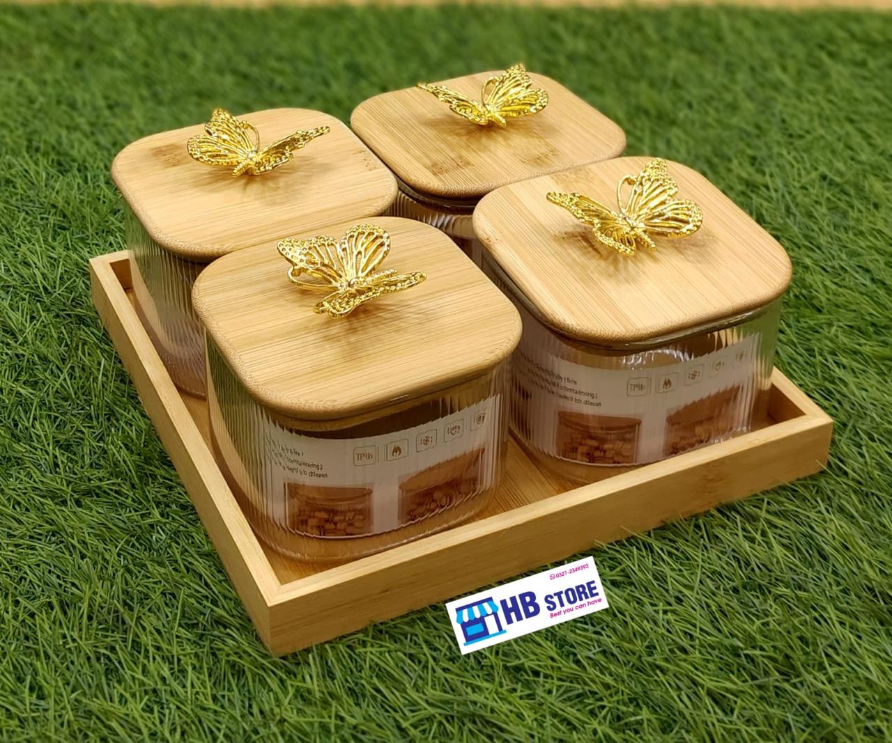 your kitchen aesthetics and keep your essentials fresh with this elegant 4-piece storage jar set. Crafted from high-quality, durable borosilicate glass, each jar features a sophisticated ribbed texture that adds a touch of modern luxury to any countertop or pantry.