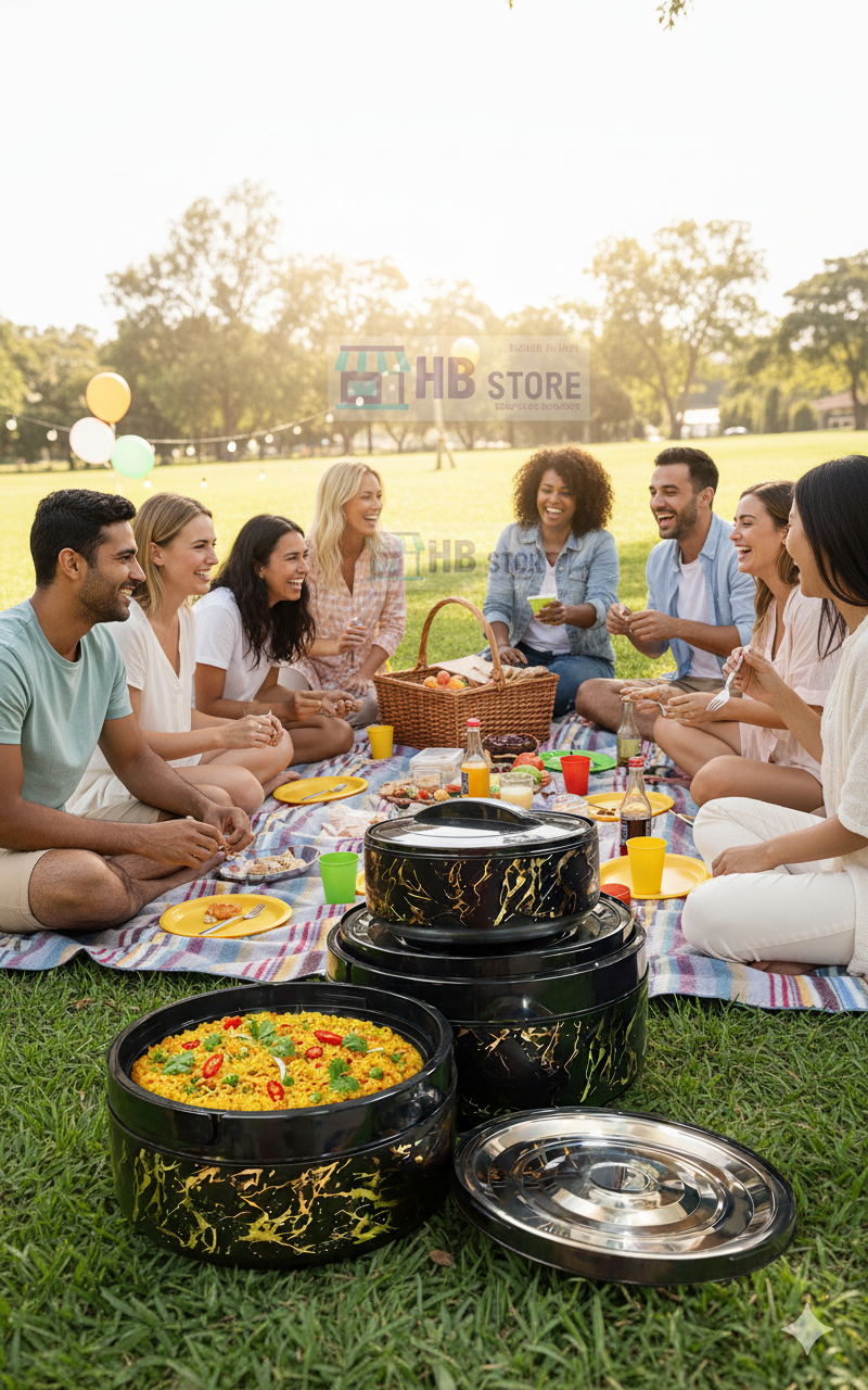 Add a touch of elegance to your dining with this 3Pcs Black Marble Hotpot Set. Designed with a premium marble finish, these insulated hotpots keep your meals hot and fresh for hours. Perfect for serving rice, curries, or soups during family dinners or gatherings. The durable build and sleek black marble design make it both functional and stylish — an ideal choice for every modern kitchen.