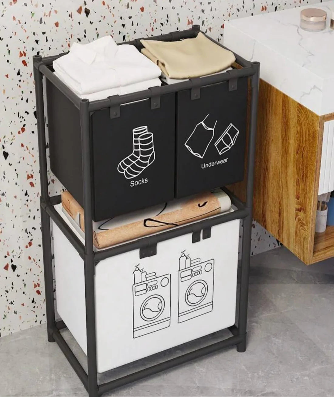 • Features multi-compartment design to aid in sorting laundry, making the washing process more manageable and organized.