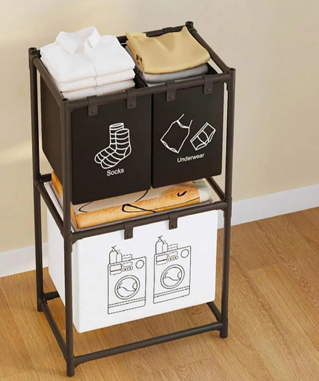 This Contemporary Multi-Compartment Laundry Basket is designed to be both functional and stylish, making laundry sorting an effortless task. Its durable plastic construction ensures reliability, while its modern design fits well into a variety of room decor styles. With specific compartments for different types of laundry, such as socks and underwear, this laundry basket brings a high level of organization to your laundry routine. Additionally, its foldable nature makes it a practical choice for any living space.