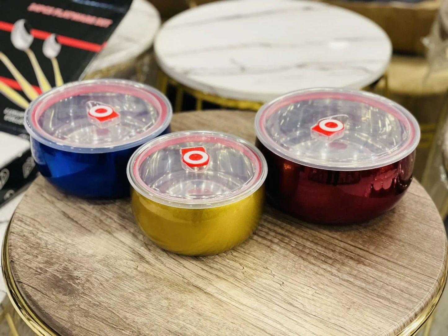 Stainless Steel Food Storage Bowls: These are similar to the ones pictured, often sold in multicolor sets with airtight lids.