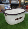 Organize your space with style and functionality with the Organizer Basket . Its minimalist and compact design is ideal for storing clothes, cleaning supplies, kitchen utensils, and more. Made of durable plastic, it features rubber handles for easy transport and a ventilation system that helps prevent moisture buildup.