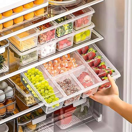 • Storage with Lid: Easily organize your fridge kitchen pantry with fridge containers for storage handy stackable fridge container to store fruits, vegetables, meat and so on.