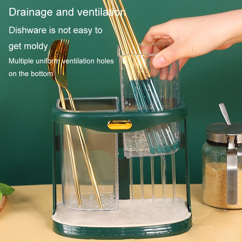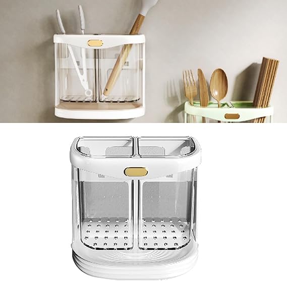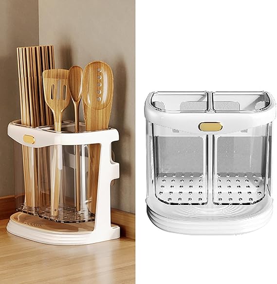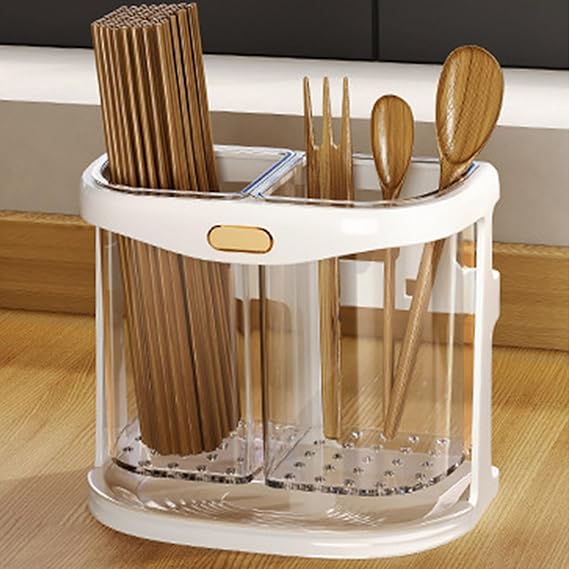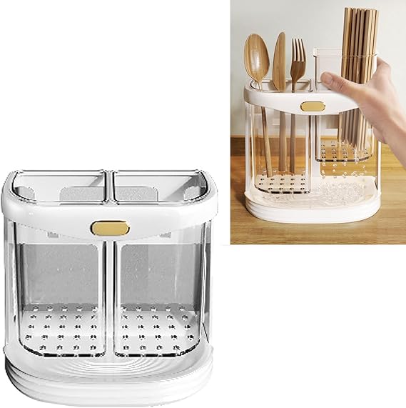 Draining Design: The chopstick organiser is thoughtfully crafted with a draining feature to prevent water droplets from accumulating on your tabletop; This design promotes a cleaner kitchen environment, as it effectively directs excess moisture away