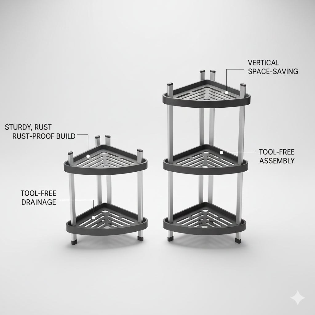 Maximize your space with this sleek, modern storage solution designed to fit perfectly into any corner of your home. Whether you need to organize your bathroom toiletries, kitchen spices, or office supplies, this heavy-duty rack offers the ultimate blend of style and functionality.