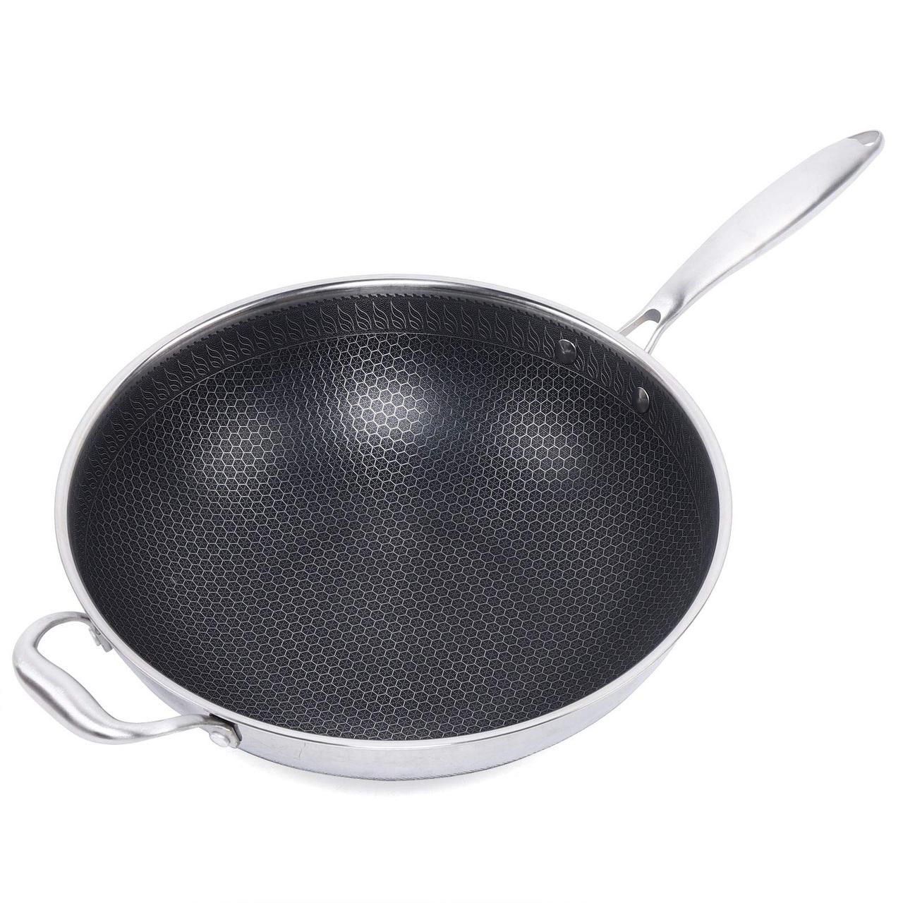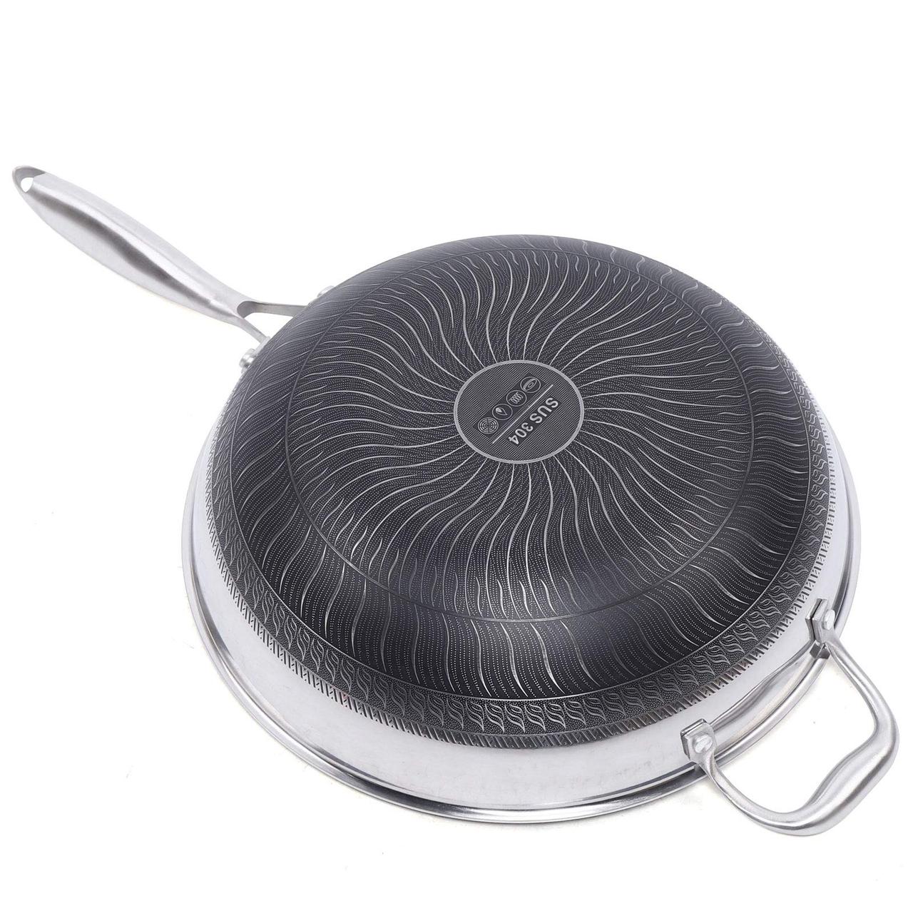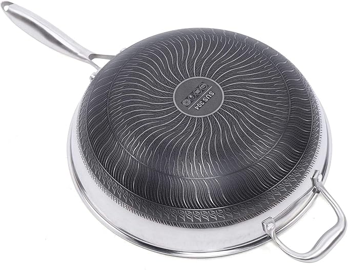 Stainless Steel Wok:The pot body adopts seven-layer casting and contains two layers of energy storage type base material, which transfers heat faster and more uniformly, and can continuously maintain a certain temperature of the pot body.