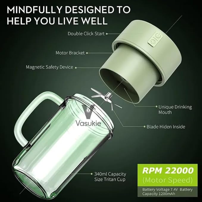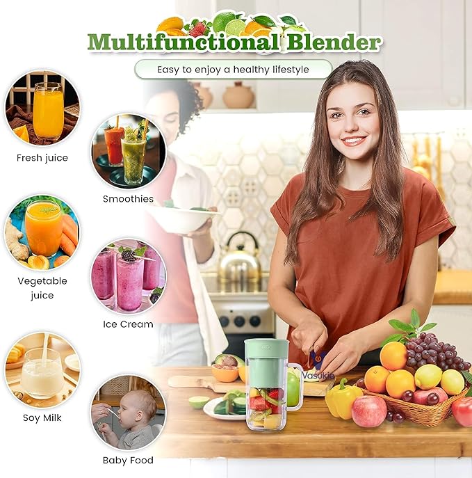 ๐ใRechargeable ใVASUKIE small blender can only charge two hours with any type of Micro-USB port and you will get 8-10 times, VASUKIE small blender bottle has a waterproof USB port and USB port and USB blender is mean easier to connect with electricity without failure
