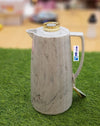 Marble Effect: Two flasks feature a sophisticated, subtly marbled finish in light grey/black and blush pink/cream tones, each topped with a decorative gold-tone lid accent.