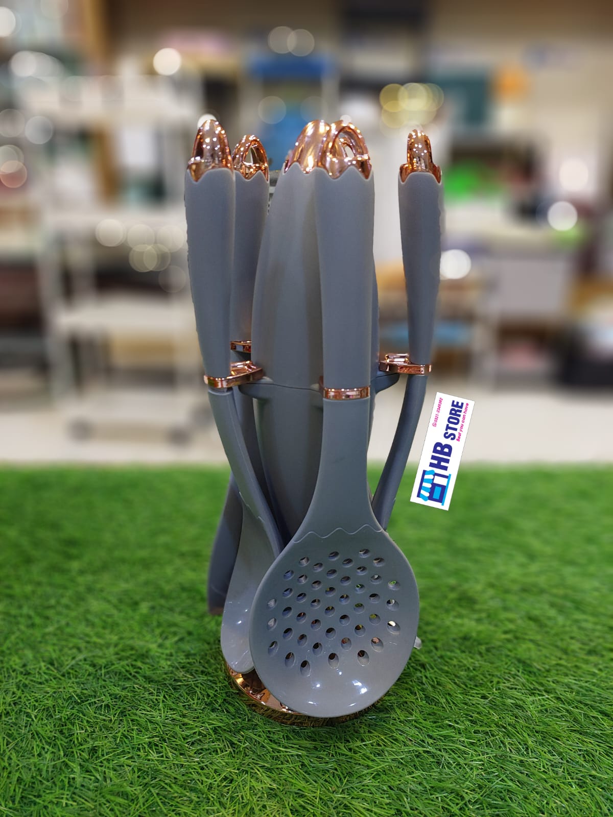 Silicone Kitchen Utensils Seven Piece Set with Rotary Storage Base ABS Handle Cooking Shovel Spoon Kitchen Utensils Set